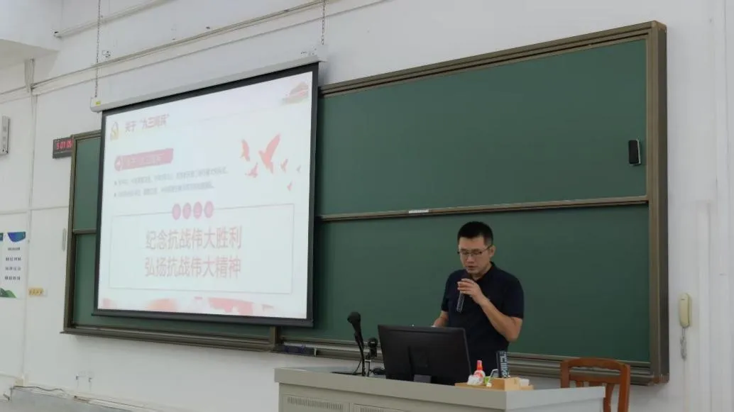 王克带领同学们重温抗战时期的英雄故事,他通过讲述马本斋、刘胡兰等英雄催人奋进的故事向微电学子们传递了他们甘于奉献、勇于牺牲、不惧强敌的伟大精神。他呼吁同学们以抗战先烈为榜样,将先烈精神内化于心,外化于行,在求学路上勇挑重任,在时代浪潮中践行青年使命。