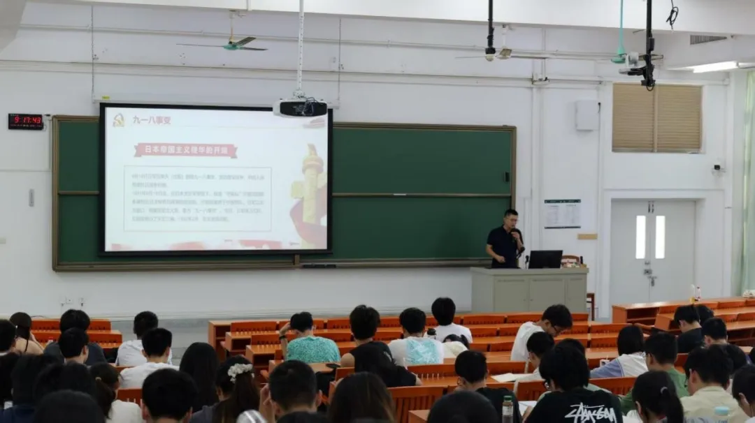 王克围绕“弘扬抗日精神”这一主题向同学们描绘出抗战中的中大,讲述了学校辗转千里、四易其址只为在战火中守护中华文脉、传承学术火种的顽强与不屈;讲述了中大师生通过戏剧、歌曲等多种形式文艺抗战、笔剑同仇鼓舞前线士兵抗战到底的拼搏与坚守;还讲述了大批校友投笔从戎,浴血奋战在捍卫民族独立斗争最前线的英勇与无畏。他还向同学们介绍了如袁隆平、钟南山等伟大的时代伟人,鼓励同学们以前人为榜样,把个人追求融入国家发展大局,用实际行动传承红色基因。