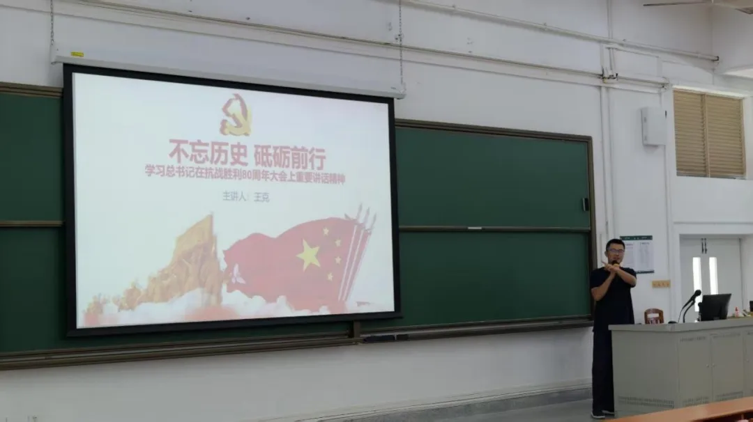 思政铸魂,启智润心。为深入贯彻落实立德树人根本任务,9月17日上午,学院党委王克书记聚焦“不忘历史,砥砺前行”这一主题,为微电学子们讲授思政第一课,引领同学们深入学习总书记在抗战胜利80周年大会上重要讲话精神。