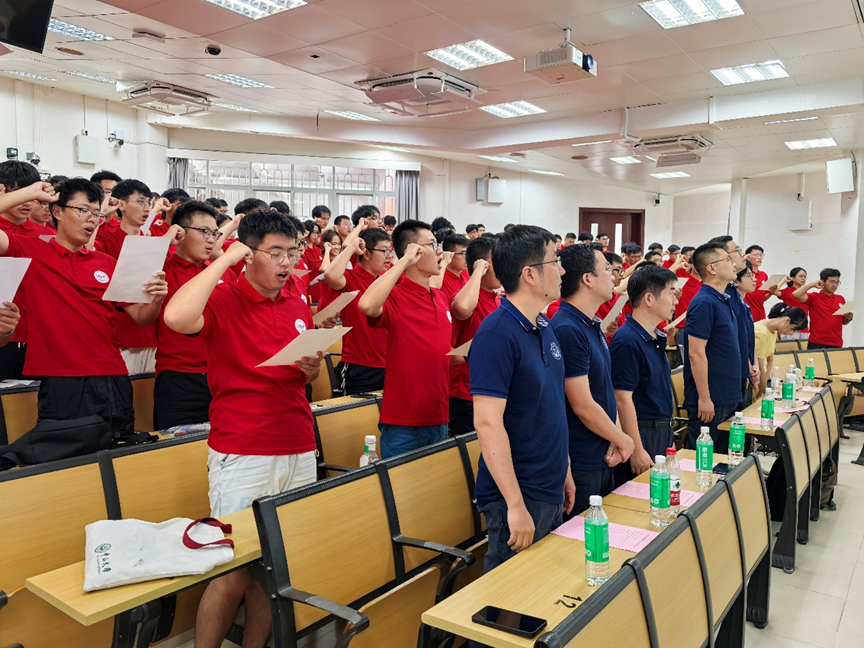 在入学宣誓环节,全体新生在领誓人的带领下,表达了要坚定理想信念、勇担时代重任,刻苦学习、追求卓越,立志以青春和智慧回馈社会、报效祖国的坚定信念。誓言铮铮,展现了新生们对未来的坚定信念和决心。
