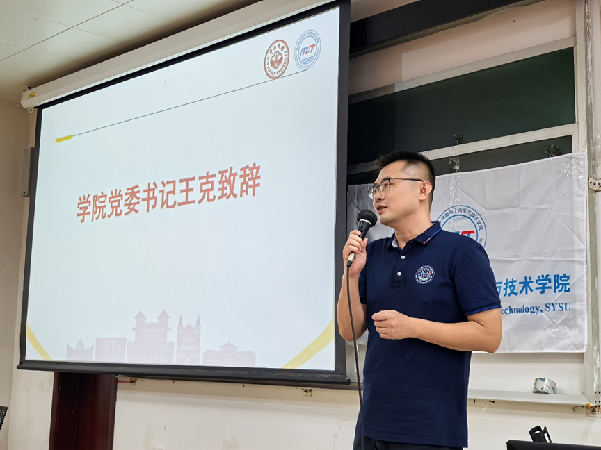 9月6日中午,中山大学微电子科学与技术学院在南校园第一教学楼1208隆重举行了2025级新生大会。本次大会由学院党委副书记王昕主持,学院党委书记王克、院长虞志益教授、院长助理徐政基副教授、院长助理朱述炎副教授等领导和学院本科新生班主任、教师代表,以及全体2025级本科生、研究生出席了本次会议。