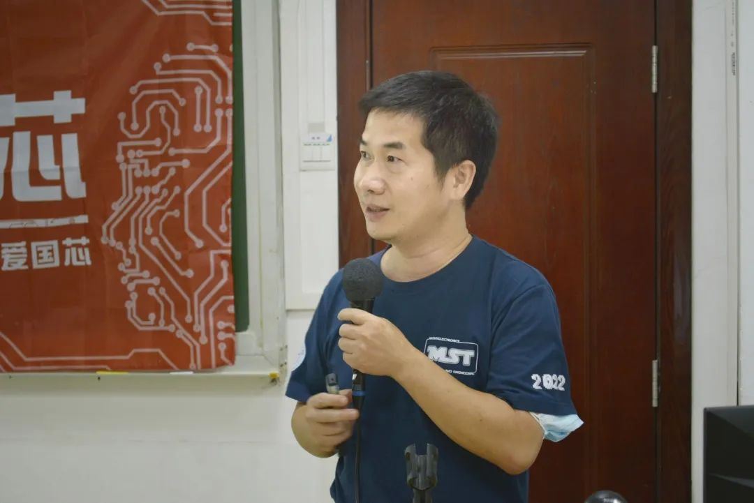 学院副院长虞志益教授发表致辞。首先,他带领同学们回顾了中山大学的发展历程,从路线和道路两个角度解释我校一流的定位,强调“三校区五校园”的规划与广珠深三城同频共振,并向同学们介绍了“背靠青山,面朝大海”的珠海校区,指出通过“提增量”促进院系建设。其次他提到,我院正处于天时、地利、人和的最好时机,国家及社会高度重视芯片技术和集成电路产业;技术与高水平人才的集中令大湾区产业条件优越;教师团队引重致远、砥砺奋斗,学生朝气蓬勃、秉持家国情怀。最后,他详细介绍了学院的平台建设、学科建设布局、学生培养规模及培养成果,并提出对同学们的期望,希望大家牢记中大校训,做引领未来的人,做具有创造力的人。