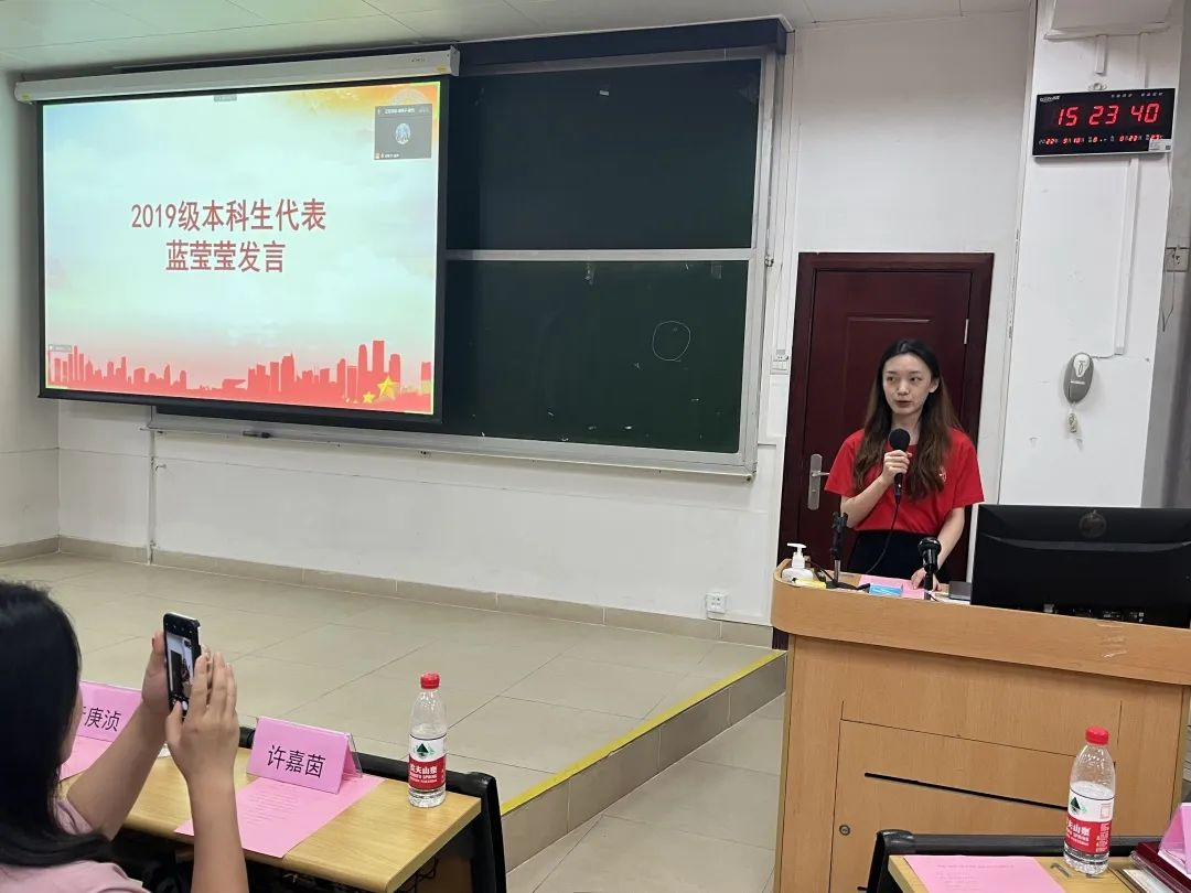 2019级老生蓝莹莹作为本科生代表发言。她将过去三年的大学生活概括为“遵从内心,坚持不懈”,回顾了学习、社团、竞赛等经历,分享了通过不断的尝试寻找方向、学会时间管理、找到学习和生活的平衡点的心路历程,告诉同学们要遵从内心的选择,学会屏蔽身边不和谐的声音;她由衷感谢来自学院、老师、师兄师姐以及同学的点滴帮助,勉励同学们在崭新的大学生活中能收获成长,追寻心中所想,“凡心所向,素履以往,生如逆旅,一苇以航”。